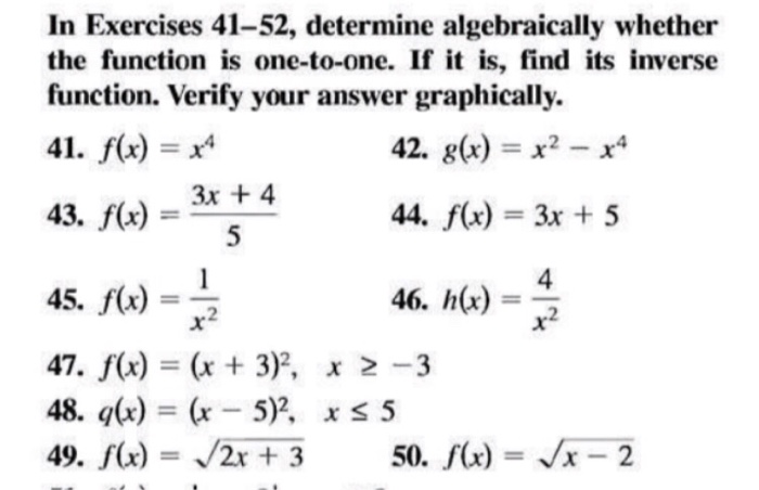 How to identify a 1 to 1 function, and use the horizontal line test. I have no idea what to do after this. If the graph has a local maximum or local minimum then that would be many to one function because on performing horizontal line test ,one would get more than one points on it. How are one to one functions used? A function for which every element of the range of the function corresponds to exactly one element of the domain. If you get an undefined value (0 in the denominator), you must move on to another technique. How to determine if a function is one to one algebraically? Now let's take y = x2 as an example. In this section, we will broaden our knowledge about symmetry in functions while classifying symmetries algebraically, as well as learning the notion of odd how to determine if it is an even or odd function graphically and algebraically? Practice problems and free download worksheet (pdf). The horizontal line test is the vertical line test but with horizontal lines instead. Find the measure of angle 6. A one to one function has not only one output for every input, but also.